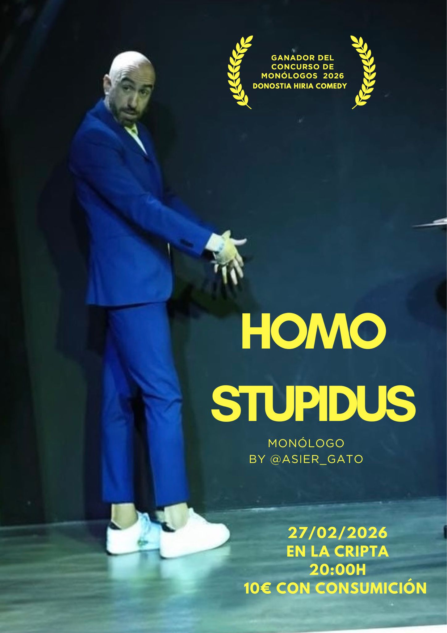 Asier Gato no ha estudiado la estupidez humana: la detecta al vuelo. En este monólogo sin filtros analiza aeropuertos, vecinos, conversaciones absurdas y pequeñas decisiones que confirman que, como especie, no vamos tan bien. Con parte de este show ganó el concurso de monólogos Donostia Hiria Comedy 2026. Un espectáculo que te invita a formar parte del viaje hacia la estupidez humana, donde te vas a reír, porque sabes que también eres parte del problema.